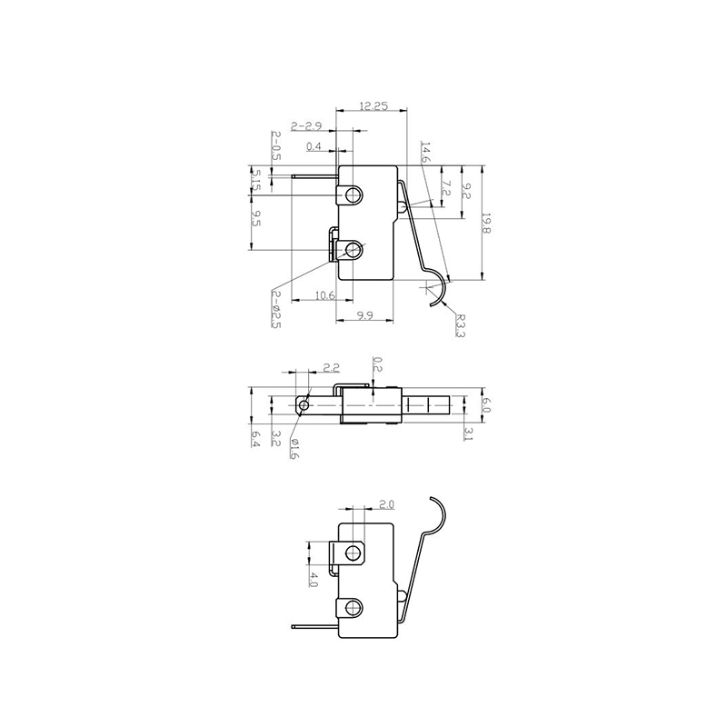 Mikro prekidač MS11 je proizvod serije mikro prekidača visoke preciznosti i visoke pouzdanosti koji se široko koristi u industrijskom upravljanju, kućanskim aparatima, automobilskoj elektronici, sigurnosnim sustavima medicinske opreme i drugim poljima. Ova serija prekidača ima mehanizam trenutnog djelovanja, koji osjeća vanjsku mehaničku silu ili pomak kroz pogonsku šipku, pokreće unutarnji opružni mehanizam za postizanje brzog prebacivanja kontakata i osigurava stabilno prebacivanje kruga i brz odgovor.
