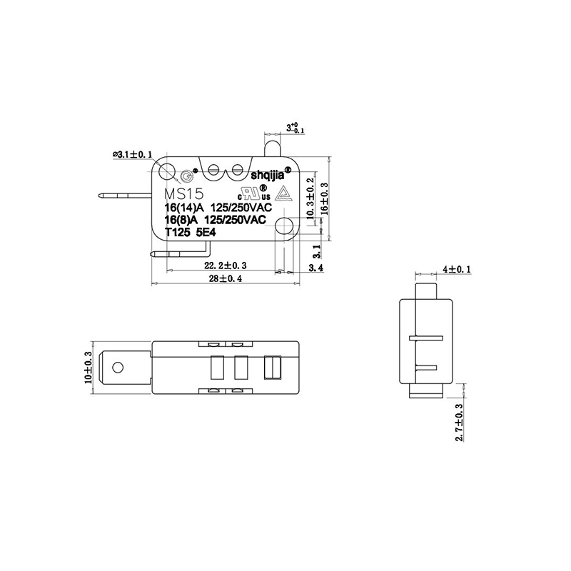 Što se tiče sigurnosne usklađenosti, MS15-2A1 mikro prekidač je certificiran od strane UL, TUV, KC i CQC, ispunjavajući sigurnosne standarde glavnih svjetskih tržišta. Ovi certifikati potvrđuju izvrsnu izvedbu proizvoda u ključnim područjima kao što su električna pouzdanost, izolacija, toplinska stabilnost i otpornost na plamen.